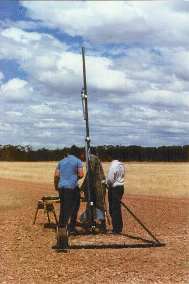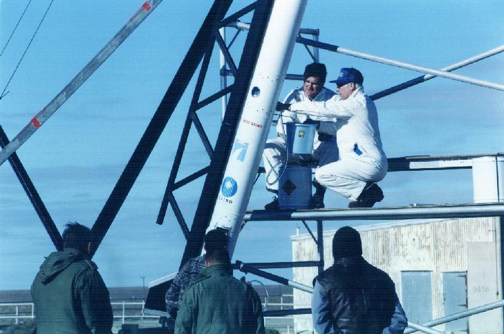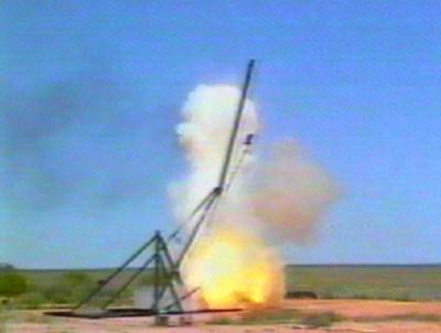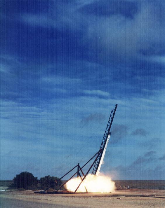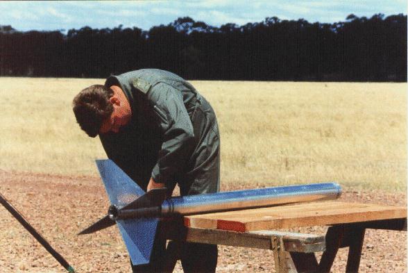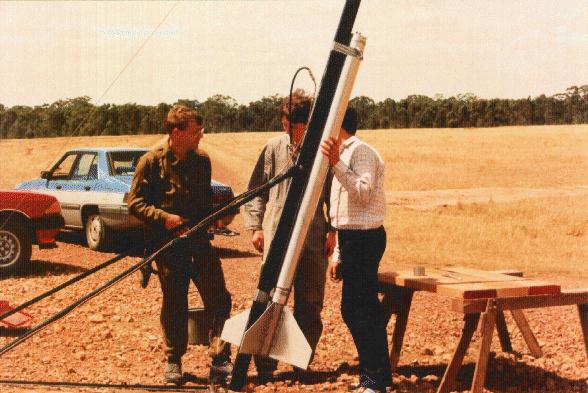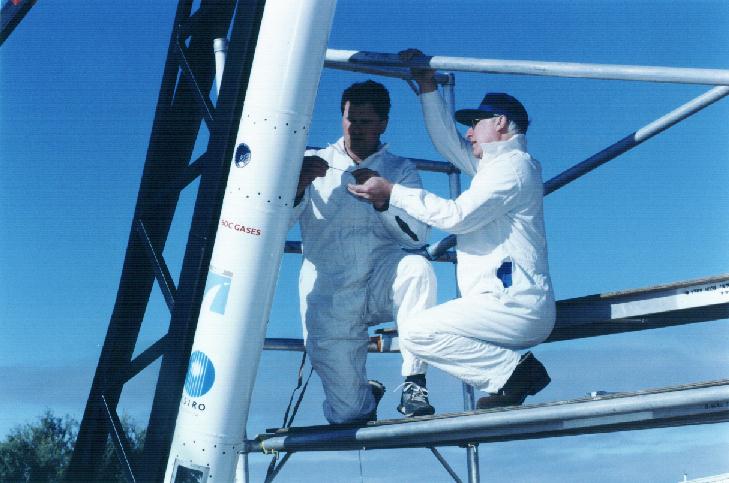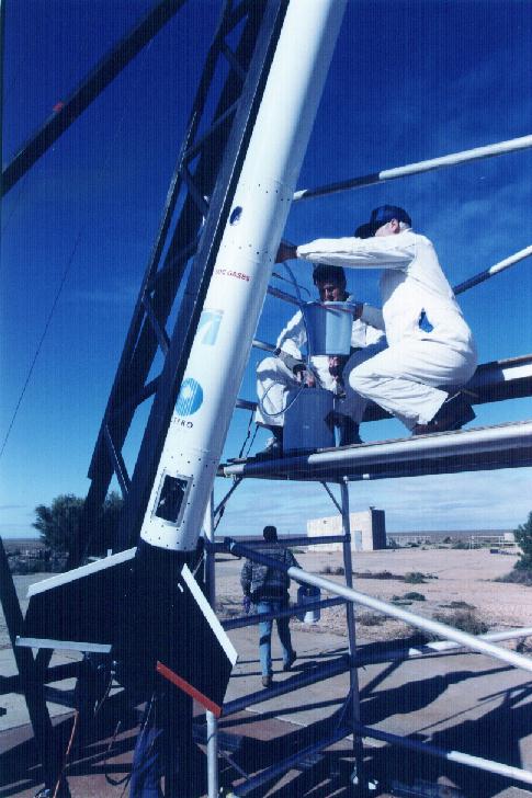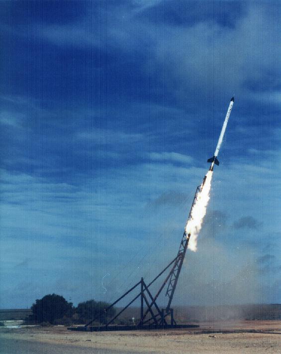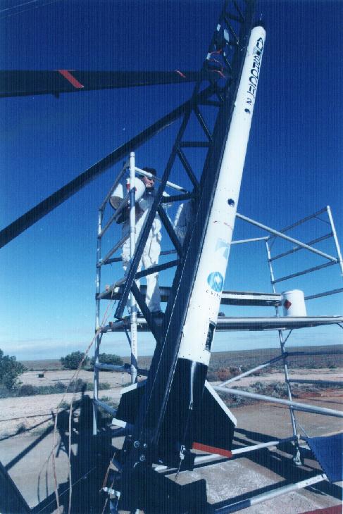 AUSROC II on the launch pad at Woomera (Oct. 1992)